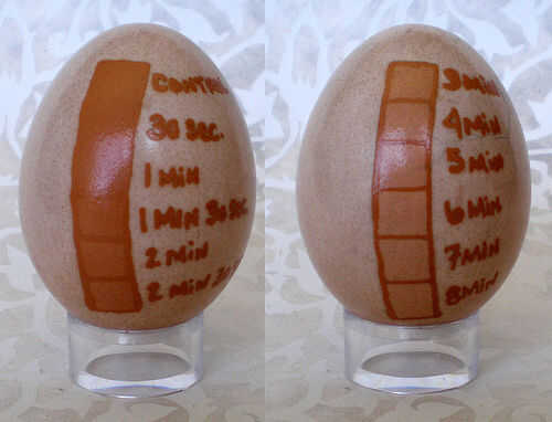 - Vinagre puede utilizarse para grabar la cáscara de un huevo. Utilizado en lugar de colorante, el vinagre elimina capas delgadas de concha creando un efecto relieve donde se realiza la depilación. En una cáscara de color marrón o verde, las áreas grabadas serán más ligeras y tonos más claros desvaneciéndose hacia el blanco. varios tonos de color pueden crearse por encerar y grabado varias veces.