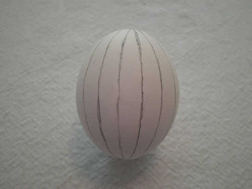Dibujar sus pautas de diseño en su huevo en lápiz. Cuando la cera se quita más adelante, eliminará estas líneas de lápiz con ella. Si usted comete un error, hacer borrar! Borrar puede rayar la superficie de la cáscara de huevo causando muerte desigual.