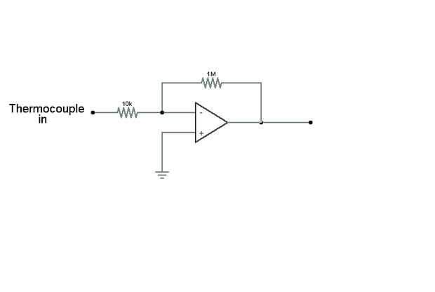 El circuito del termopar es un x100 simple circuito del amplificador, en el cual el voltaje de la termocupla es la entrada. El termopar se coloca en serie con una resistencia de 1M Ohm, para estabilizar la respuesta actual. Yo pude han usado un amplificador termopar pre-empacados, que tendría mejor estabilidad, pero para las temperaturas involucrada precisión no es un motivo de preocupación, y el termopar sí mismo es antiguo y bastante inestable para comenzar con. En el futuro, espero tratar este tema pero el uso principal del termopar es seguimiento de los cambios de temperatura relativa, para que la configuración actual es adecuada.