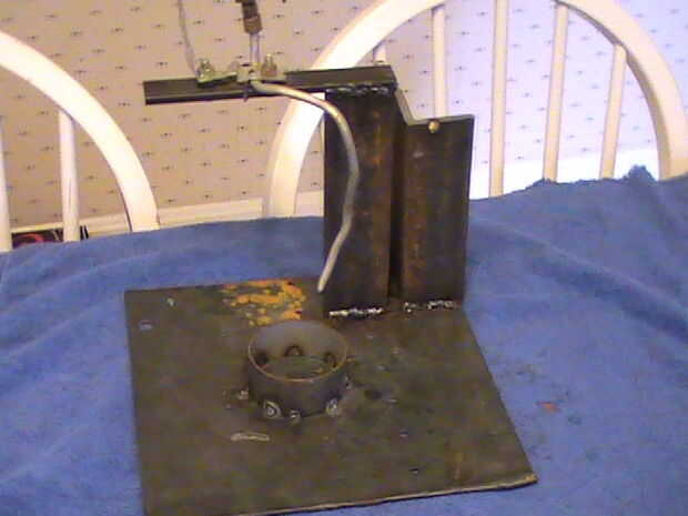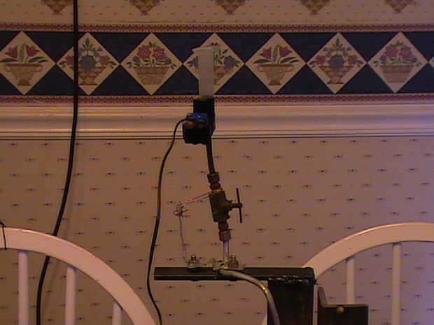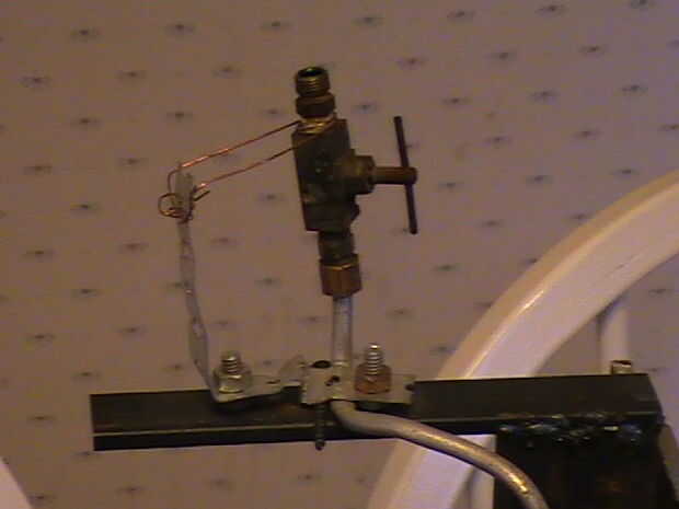 La alimentación de combustible se compone de una antigua jeringa, que se monta en una sección de la tubería del piloto. El tubo se enrosca en una llave de gas, que se conecta a otra sección de tubo piloto que lleva en el horno. El mecanismo por el cual se controla la alimentación utiliza un electroimán, que se asegura al lado de la base de la jeringa. Un rodamiento de bolas de acero se deja caer en la jeringa, que bloquea la alimentación normalmente de gravedad. El electroimán dibuja el cojinete en el lado accionado, permitiendo que el combustible (alcohol isopropílico) a fluir a una tasa determinada por la llave.