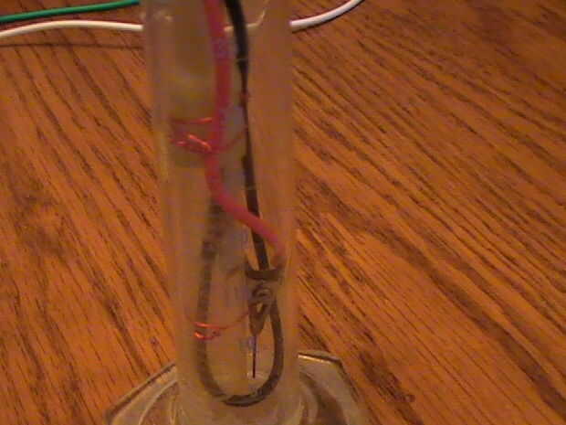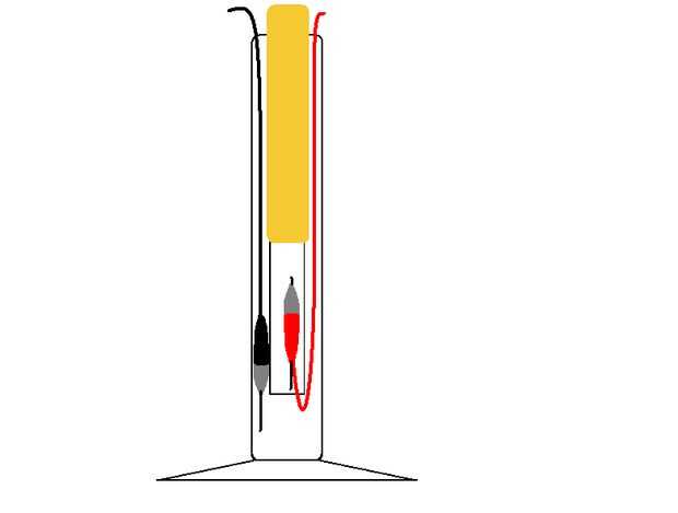 Porque la producción de compuestos de iones de metal no deseada, usar electrodos de grafito. En lugar de comprar electrodos relativamente costosos de las empresas de alimentación de laboratorio, uso los 'cables' de lápices mecánicos, que atribuyo a Cocodrilo clip conduce. Allí se expone metal de los cables, por lo que para reducir el metal acción durante los disparos reales, extender el grafito muy por debajo del metal, para que los palillos de grafito son mucho más cercanos uno al otro que los conductores de metal son.