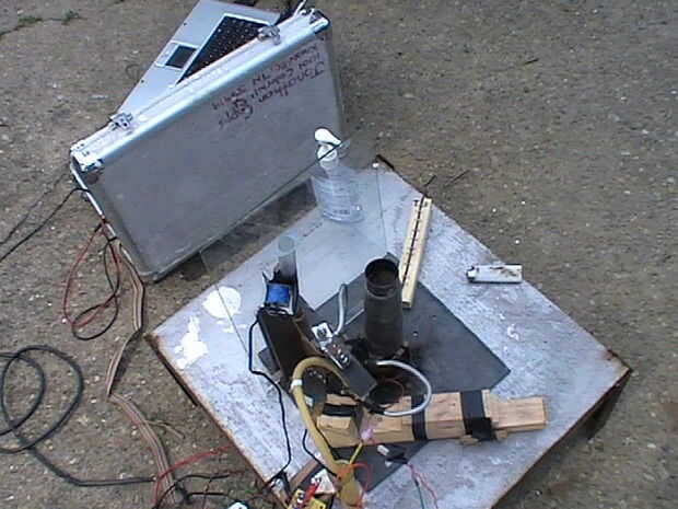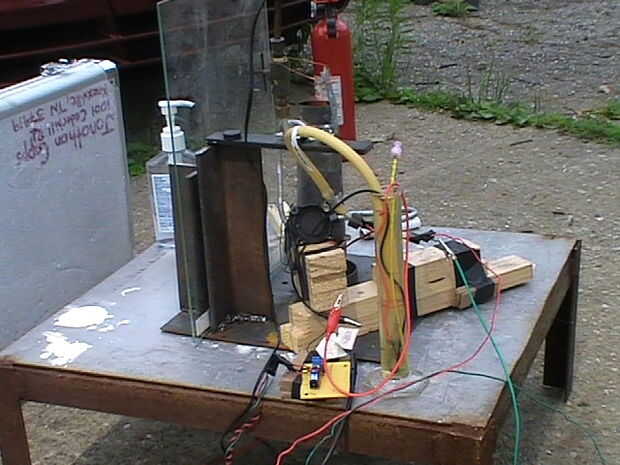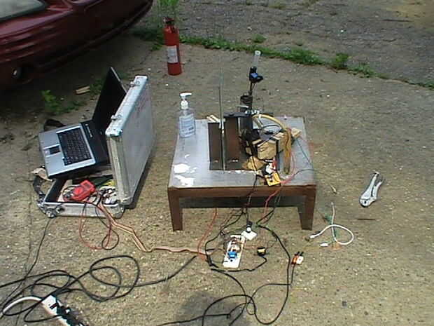 Montado el dispositivo completamente, fuera por razones de seguridad. La mesa de acero en el que todo se sienta fue una suerte encontrar este año y no es de mi propia construcción. Es útil, sin embargo.