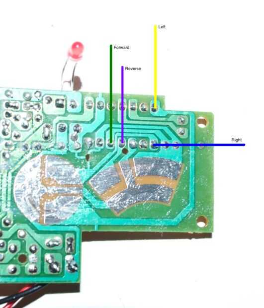 Usted tendrá que averiguar cómo funciona la junta con el fin de averiguar cómo conectarse a Arduino. Usando un cable que podrá trazar la placa y averiguar qué conexión 2 necesita conectarse para mover el coche. Una vez que la figura que usted puede enviar una señal de los pines de Arduino y tiempo de prueba se mueve el coche o no. Recuerde que usted está buscando 4 conexiones, una para cada comando coche, adelante, atrás, izquierda y derecha.
