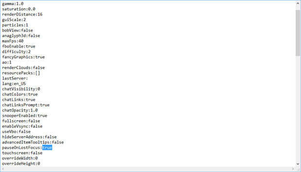Minecraft normalmente hace una pausa el juego y va al menú de juegos cuando alt-tab de ella o perder el enfoque. Esto hace más difícil ver qué su python scripts están haciendo si usted está lanzando desde fuera de Minecraft. Para hacer que, recomiendo editar el archivo options.txt en el directorio de Minecraft (%appdata%\.minecraft en Windows), cambiar el