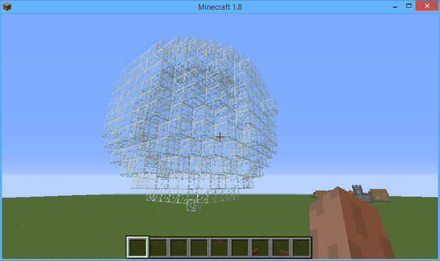 (Es decir, la distancia a (x0, y0, z0) es a más r). Así que para dibujar una esfera, a recorrer todos los puntos (x, y, z) en un cubo de la longitud lateral 2 * r + 1 circundantes (x0, y0, z0) y dibujar un bloque si la desigualdad anterior sostiene.