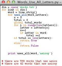 Para un segundo programa similar tuvimos que modificarlo para que imprimiría sólo palabras que contenía cada palabra siempre. Sin embargo, si hubiera dos letra "a" entonces la palabra debían tener carta 2 "a" carta no uno y otra de otra cosa.