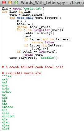 Las palabras podrían utilizar una, algunas o todas de las letras suministradas. Usted puede poner en diferentes combinaciones de letras para ver lo que le da más o menos.