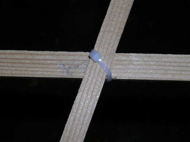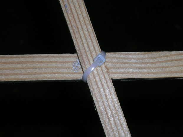 hice varios de estos enrejados. En la primera, no presté ninguna atención al ángulo de amarre zip o donde terminó el "pestillo". Mi esposa vino casero y quiso el "pestillo" detrás de los montantes. También pregunta cuántos estaba construyendo. "Uno" fue mi respuesta; "¿6?" era suyo. Decidí en mi propia que pesca el zip lazos para que sean simétricas estaría bien. So...When colocar los travesaños, ponerlos
