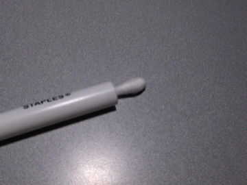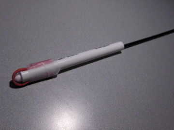 Para cargar el q-TIP, ponerlo en el otro lado y usar algo para embestir hacia abajo. (Yo uso el cartucho de tinta de la pluma). Entonces cuando la goma comienza a estirarse, tomar el q-Tip en el otro lado y tire de ella. Del frther tirar más rápido y más duro el q-Tip va a tirar pero las posibilidades de la goma rompiendo aumento. (Obviamente, deja ir al fuego.)