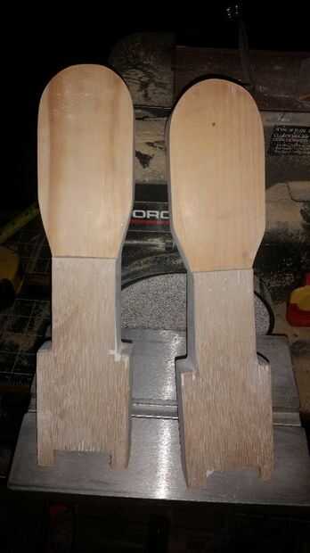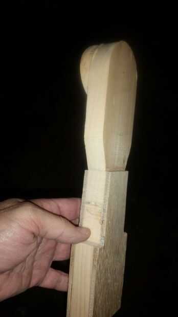 Para la pata delantera otra vez cortamos de un trozo de pino. Esta pieza fue aproximadamente 4 "x 2" para empezar y luego cortamos la parte superior en un ángulo que parecía agradable a la vista. Entonces cortamos una segunda pieza de chatarra de pino aproximadamente 4 "x 4" con los 4 lados están biselados a unos 17 grados. Atamos el 4 "x 4" pieza fue unida a la sección cuadrada de lo 4 "x 2" pieza y luego el castor fue montado en la parte inferior de la 4 "x 4" pieza.