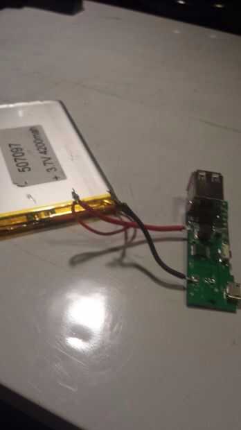 Tienes un positivo y negativo terminal de entrada de en el controlador de carga y un positivo y negativo "terminal de la batería". Su poder proviene de 2 fuentes (3 contando el micro-USB), por lo que vas a tener que empalmar los cables positivos y negativos desde el panel solar y dynamo. Lata y soldar los cables entre sí y respecto a la terminal correspondiente en el controlador de carga de la soldadura. Oriente los cables para que su colocación no interferirá con el controlador de carga de posición o bloquear el orificio de micro-USB en el caso.