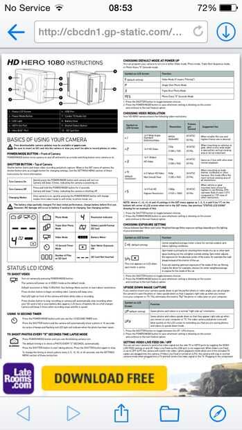Ir en línea y encontrar el manual para el dispositivo seleccionado - en este caso ir al sitio web de GoPro.
