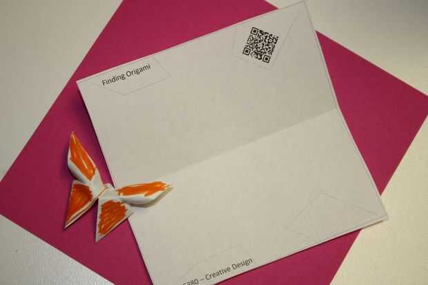 Ahora vas a utilizar tu imagen de plantilla dibujada mano como guía donde colocarás el código QR cualquier fotos o texto que desee. Asegúrese de que orientan todo lo que quieras Mostrar en tu QRigami doblado.