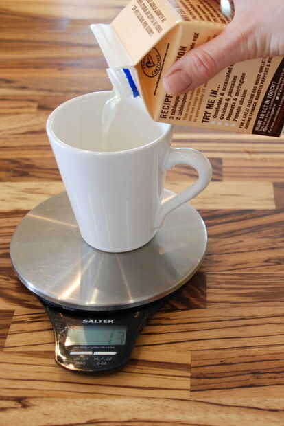 En esta etapa tomó cerca de 10% de la mezcla y colocarla en un recipiente separado. Colocar 10% del merengue restante en este tazón de fuente y el otro 90% en la mezcla original. Para hacer este pesar la mezcla del tazón de fuente y deducir el peso usted tomó al principio. Ahora Divida esta cifra por 10.