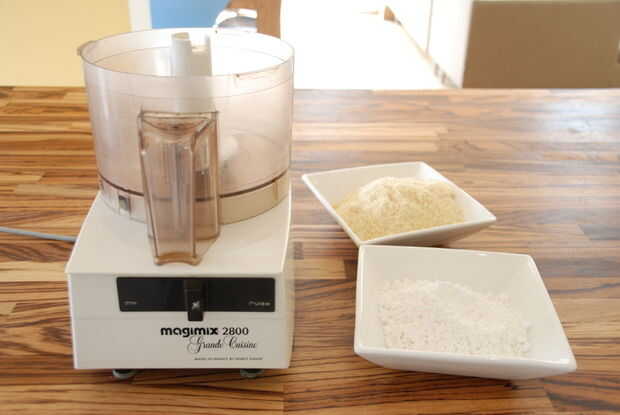 Colocar las almendras molidas y azúcar en un procesador de alimentos y pulse varias veces hasta que bien combinados.