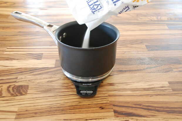 Colocar el azúcar impalpable y el agua en una olla grande. Coloque sobre fuego fuerte y revolver no.