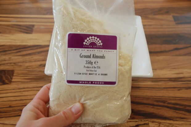 Tome la restantes 80g de claras de huevo y revuelva las almendras y el azúcar hasta que se forme una pasta suave.