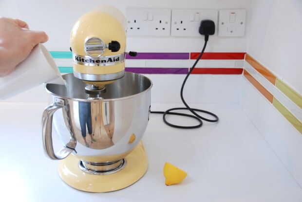 Para el recipiente grande (90%) agregar al menos 1 cucharadita de color de alimento amarillo.