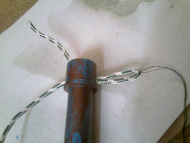 luego utilice la cuerda náutica desde el extremo más grande y haga enganche nudo de un guardiamarina en el extremo que en el tubo. tirar la cuerda y cortar a 30 cm (sello todos los cortes con el ligthfire)