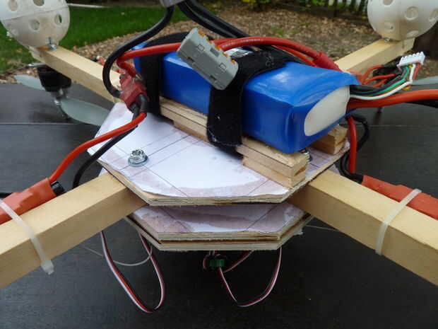 Cuando conecta la batería, será resbaladizo contra la madera. Para prevenir esto, ponga una tira de pegamento caliente sobre la madera. No está pegado la batería en, está sólo dando el soporte de la batería más fricción por lo que la batería no se deslice en el Monte.