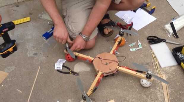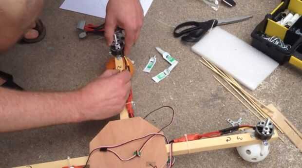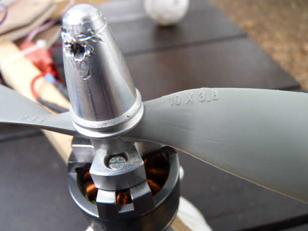 Coloque los puntales en el motor. Tenga en cuenta que tienes dos objetos que giran las agujas del reloj y dos que giran en sentido antihorario. Intente y consiga experiencia este derecho, o su primer vuelo será cambiando boca abajo en la tierra.