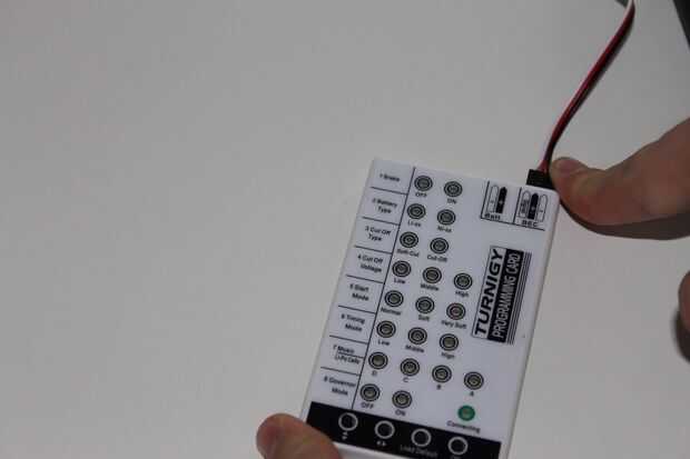 - Conecte el servo en el puerto BEC en la Junta de programación. Reloj hacia fuera alinear correctamente los cables: