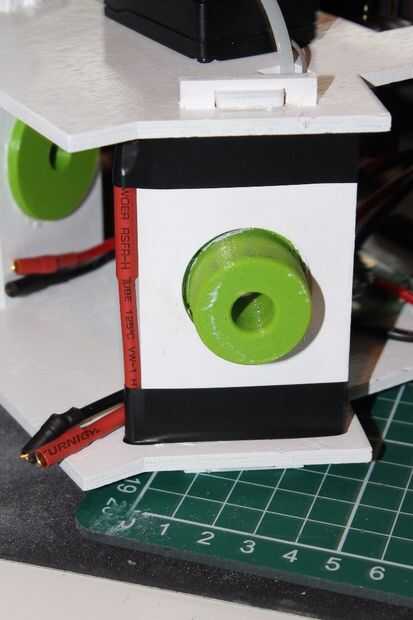 - Tomar el cuchillo de precisión y a tallar un poco de material entre las marcas que hiciste. Ahora conecte un cable de servo en cada lado, para comprobar si se ajustan: