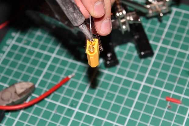 5. Insertar alguna soldadura en el lado del conector XT60 e inserte el extremo largo del cable rojo +.
