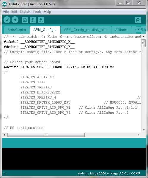 Ahora abre el código de ' Sketchbook ' y abra la ficha de config.h . Para la configuración de código fuente, toda la información se incluye en megapirateng enlace.