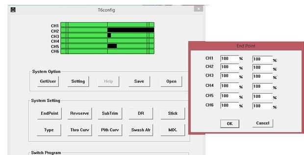 3) establece puntos finales al 100% y subtrim cada canal según sus necesidades y la estabilidad del quad.
