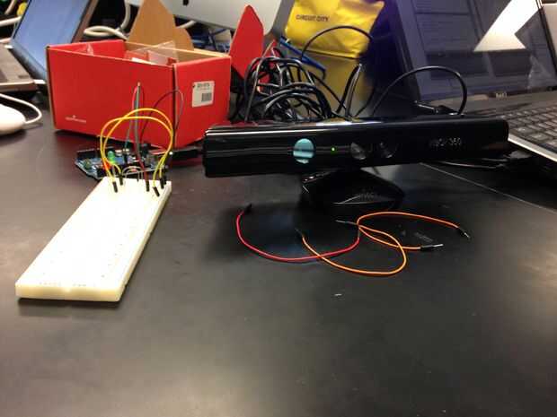 Por desgracia, es necesario el software Aeroquad valores analógicos. Para lograr esto, utilizamos un condensador (0.47 uF) y resistencia (82 k ohmios) para crear un filtro RC para aumentar el voltaje de 0 a 3V. Esto nos permite convertir los valores de Kinect controles Aeroquad utilizables.