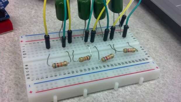 Vinculamos este archivo con un bosquejo Ardunio que lee los valores del sensor Kinect (salida en el Arduino mediante pines digitales) a través de pines analógicos después atraviesa un filtro RC para aumentar el voltaje de 0 a 3v. Este bosquejo puede encontrarse también en nuestra página de GitHub.