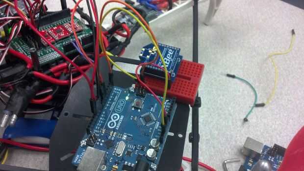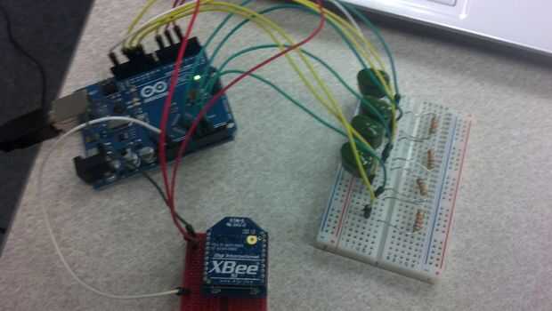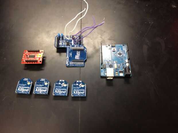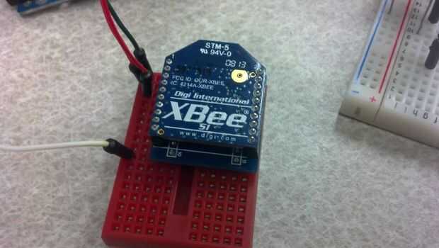 Una vez sus XBees todos, gancho hasta el circuito de tierra y el otro al circuito de aire. El bosquejo para el aire de Arduino puede encontrarse en nuestra página de GitHub.