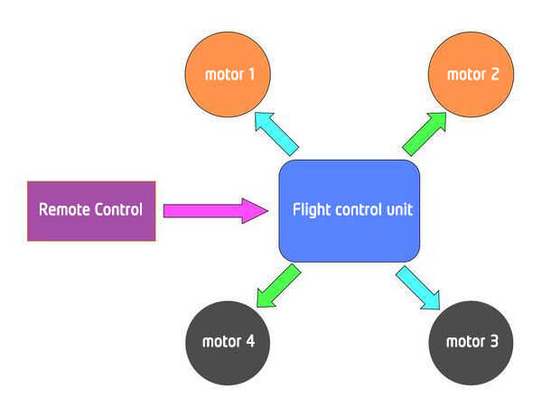 Avión general modelo del fijo-ala, el controlador no es que sea necesario y algún jugador no instalan en los aviones de ala fija. Distinto, el quadcopter es un sistema prohibitivos con tres grados de libertad y cuatro control de entrada, que necesita un sistema de control para hacerse cargo. De causa, hay algunos detalles de la tecnología para ser diseñado en el proceso, tales como los datos de lectura del sensor debe ser filtrada y el algoritmo PID de la echada, rodillo y desvío adquirido a ajustarse.