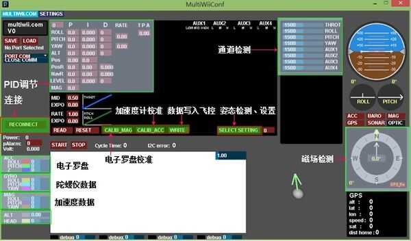 Después de eso, simplemente abra MultiWiiConf.exe y ajustar parámetros como administrador en MultiWiiConf\application.windows32, que puede verse en la siguiente imagen: