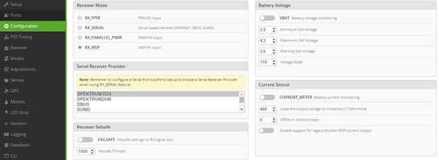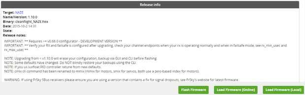 Naze32 utiliza un cable USB para comunicarse con el configurador de Cleanflight en el PC. Verifique que haya comunicación.