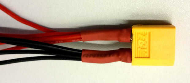 Soldar el conector XT60 directamente a la salida de cuatro. Preste atención que cuenta con el conector positivo (rojo) y negativo (negro).