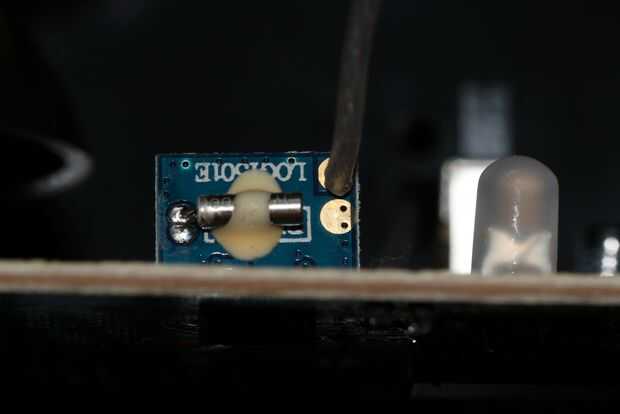 La soldadura de la antena WIFI nueva en el transmisor de Syma X5C .