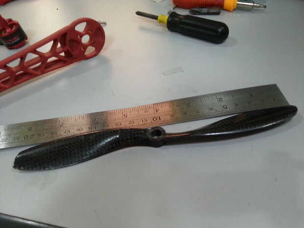 Ahora aquí es un paso fácil generalmente que tiene una etiqueta que la hélice se puede saber de qué tamaño es. En mi caso estoy usando un 8" x4.5". Ahora en lugar de convertir las unidades de agarrar la regla y seguir las medidas exactas en "mm"