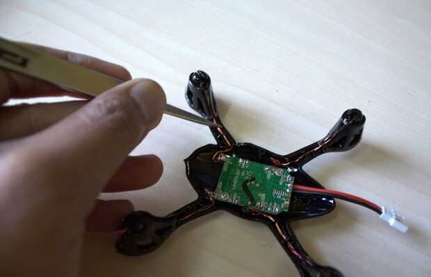 Los LED son muy útiles durante el vuelo de la noche. Hay 6 LEDs en Hubsan-X4, dos a bordo y cuatro restantes deben instalarse en cada brazo (cerca de los motores). Hay dos pares de LEDs, es decir, rojo y azul. Tenemos que instalar a los pares azul en la parte delantera y el par rojo en la parte posterior de lo Quadcopter.