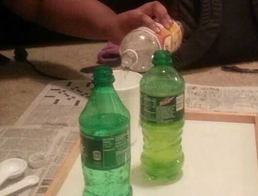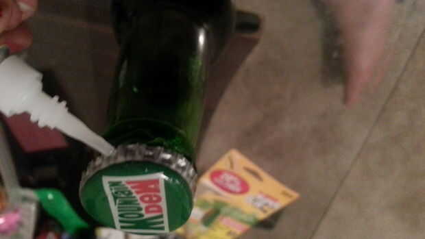 En primer lugar, el recipiente o jarra tendrá que ser aclarado completamente. Una vez que el agua tónica con quinina, el colorante de tinte y la soda, vierta en la jarra. Añadir 1/3 Sprite y rocío de la montaña 1/3 a 3 gotas de colorante alimentario. Luego, terminar la mezcla con el agua tónica. Después de haber hecho esto, vierta en la botella del coque. Una vez hecho esto, cierre la botella del coque. Luego, pegar la parte superior en fijarlo y asegúrese de que no haya fugas de agua de la botella. Parte superior de la Nuka Cola Quantum, coloque la batería de LED en la parte inferior de la botella y mira tu propio resplandor de Nuka Cola. Ahora eres libre de tomar o usar esto como una fuente de luz! También, deberías probar a diario de algún tipo o una toalla para que si se filtra, no se derrame y no salir de un lío.