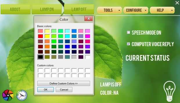 Nota: Siempre que un usuario cambie el color el área de estado de información de lámpara se actualiza y si es modo de respuesta de voz de ordenador en ordenador también habla de nuevo a usted (o la lámpara cómo siempre que desee ver como )