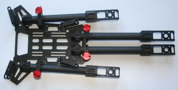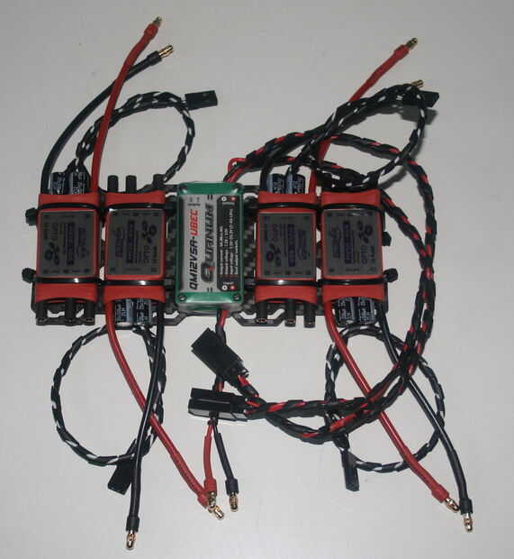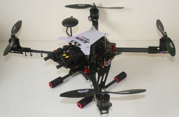 Drone Especificación: Quanum XJ470 marco kit, X8R receptor para un RCTimer de Taranis Tx, Quanum UBEC de 12V, 5A/5V conmutación UBEC, RCTimer 40A HVSK OPTO ESC, anunciador HK, APM 2.6 controlador de vuelo (Arducopter v3.2.1), NEO 6 GPS y brújula, telar de energía HXT60, Monte brújula plegable, FC antivibraciones soporte para controlador de vuelo, monitor/alarma de batería de LiPo, motores sin escobillas RCTimer HP2814-910kv, tiras de luz LED , Platos de batería de 152mm de tarot, varios tornillos y espaciadores.