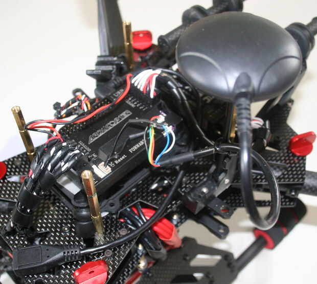 * Tenga en cuenta que las imágenes de prueba de vuelo se llevó a cabo experimentando con una base de espuma para la 2.6 de APM y permite cierta vibración para el controlador de vuelo, por lo tanto, los aviones no tripulados deriva hacia arriba y hacia abajo ligeramente. Con el soporte anti vibraciones usado - como se muestra en este video que se ha resuelto este problema.