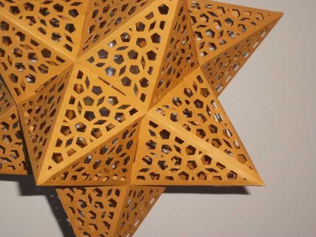 La forma aquí expuesta se llama un pequeño dodecaedro estrellado. El geómetra juguetón ha estado trabajando con esta forma durante varios años como se ve en nuestra línea de linterna de naves cósmicas . Actualmente nuestros productos son todos hechos con laminados impresiones digitales, pero esperamos lanzar una nueva línea de modelos de sólo papel respetuoso del medio ambiente más llamado naves espaciales terrestres. Esta es la primera de su clase, y nos ofrece sus diseños en especie. Esto creamos instructable para el concurso de Epilog 4, ya que esperamos obtener un láser de corte para ayudarnos a distribuir las naves terrestres en todo el mundo para aquellos que no tienen las herramientas ni el tiempo para hacer su propio.