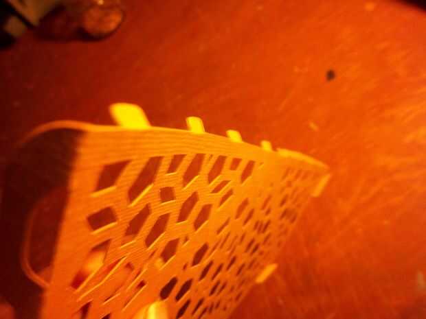 Ahora que va a conectar las fichas en el borde largo del panel (una modificación del sistema de conexión de borde SlideTabs por Chris K Palmer). Empezar por insertar la ficha más cercana a la punta de la pirámide del corte de ranura adyacente. Primero inserte el extremo de la ficha más cercana a la punta, luego empuje en el otro extremo. Continuar insertando las lengüetas otras 3, trabajando desde la punta hasta la base de la pirámide. Aquí hay un video que ilustra el proceso: