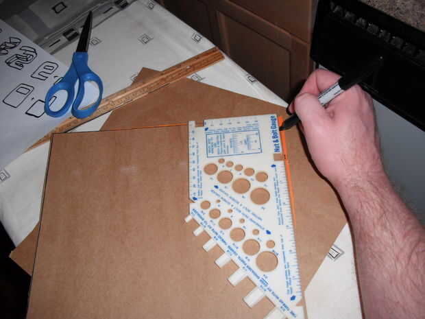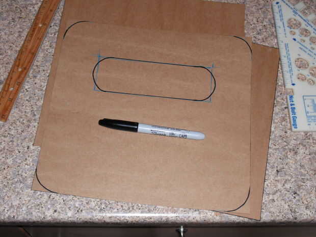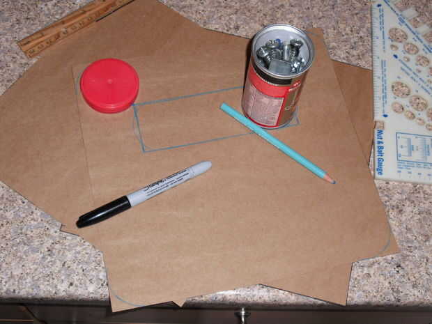 Para las plantillas, he utilizado un cartón muy delgado. Es decir, usé la caja de pizza congelada de un Tony. Era sólo lo suficientemente gruesa como para fácilmente llevar a cabo su forma, pero delgada para corte muy limpiamente y conseguir una forma agradable para la plantilla. Una última nota sobre plantillas, terminé creando un poco de cada uno, para que al marcar hacia fuera líneas de corte podría colocar al lado de uno al otro y ver visualmente lo que diseño podría funcionar mejor.