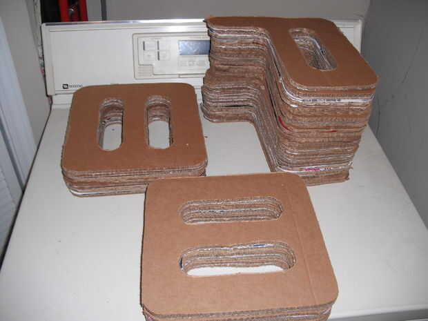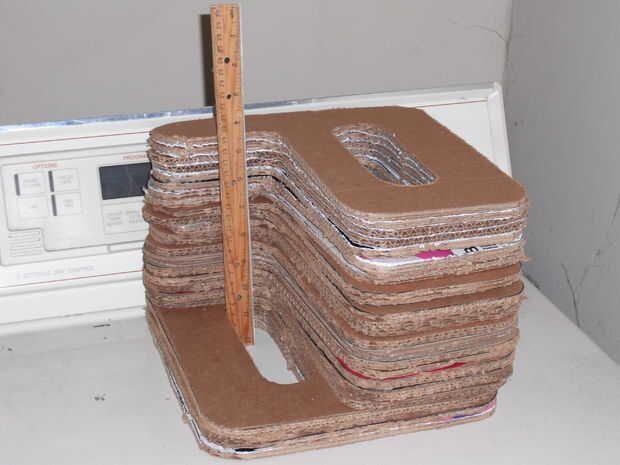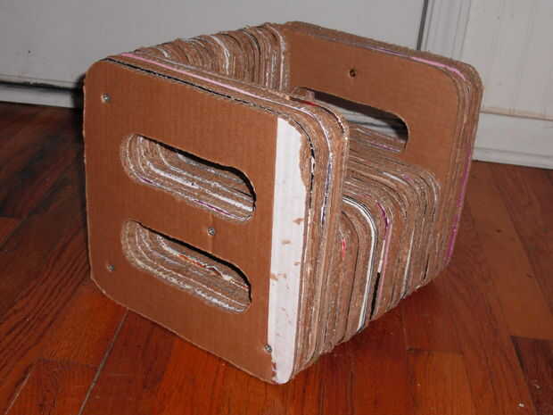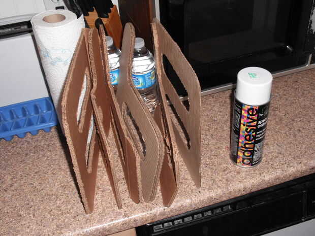 Una vez que tengas todas las piezas cortadas, podría ayudar a poner a todos juntos y el peso hacia abajo un poco durante la noche para que las piezas son bonito y plano y listo para pegar juntos. Usé un adhesivo en aerosol y rápidamente le cubra una parte de la palmada contra el colectivo mientras revisa las esquinas diagonales para verificar que era recto antes de pasar a la siguiente pieza y la pieza siguiente. Cuando todas las piezas juntas, poner algo sobre ellos y pesan una vez más durante la noche para permitir que el pegamento se seque completamente antes del siguiente paso.