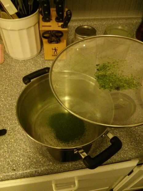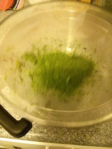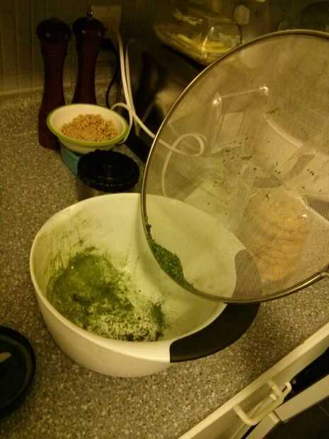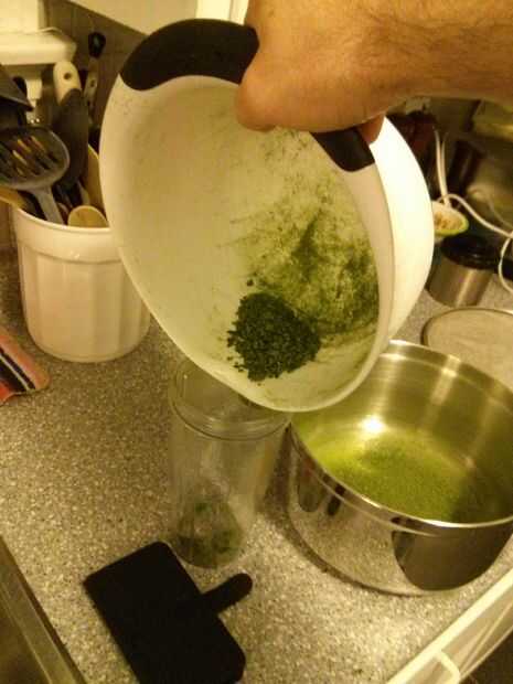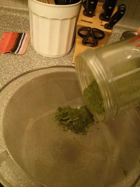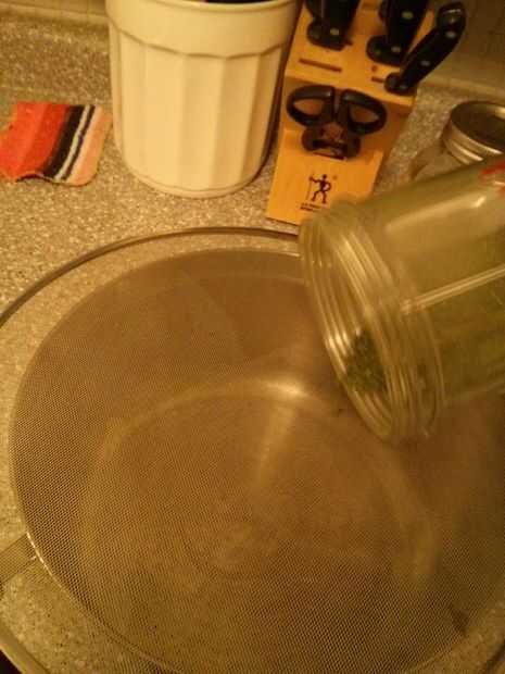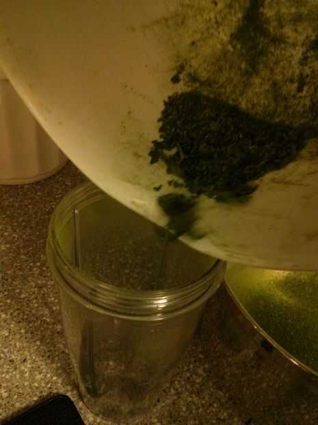 La izquierda, vierta sobre las piezas en su licuadora/taza para la próxima ronda de la deshidratación.
