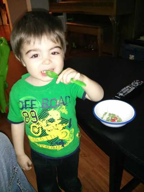 Mi hijo intentó un poco e insistió que le doy algunas en un recipiente con una cuchara. Me encanta a ese pequeño individuo raro.